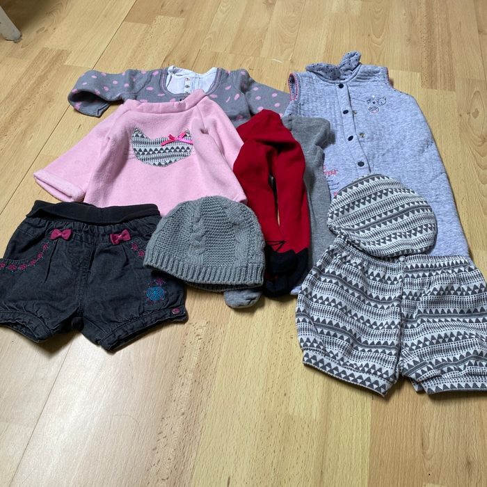 1 pulls 1 sweat-shirt 2 collants 2 shorts 1 combinaison matelassé ouverte complètement avec pressions 1 bonnet