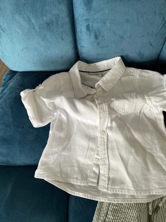 Ensembles chemise blanches fines + petit chino rayé blanc et vert clair effet froissé Possibilité de resserrer la taille Taille 6 mois Marque tape à l’œil TBE porté seulement 2 fois donc comme neuf #tao #tapealoeil #ensmeblebebe #ensemblebebe6mois #ensemblechicbebe #ensembleetebebe #ensembleceremonie #ensemblebapteme #ensembleevenement #tapealoeilgarcon #tapealoeilbapteme #chemisebebegarcon #pantalonchinotapeàloeil #tao #chemisetao #chemiseblanchesbebe6mois #ceremonietao #mariagebebetao #pantalonvert #lotvetements #lotvetementsbebe #lotvêtements6mois