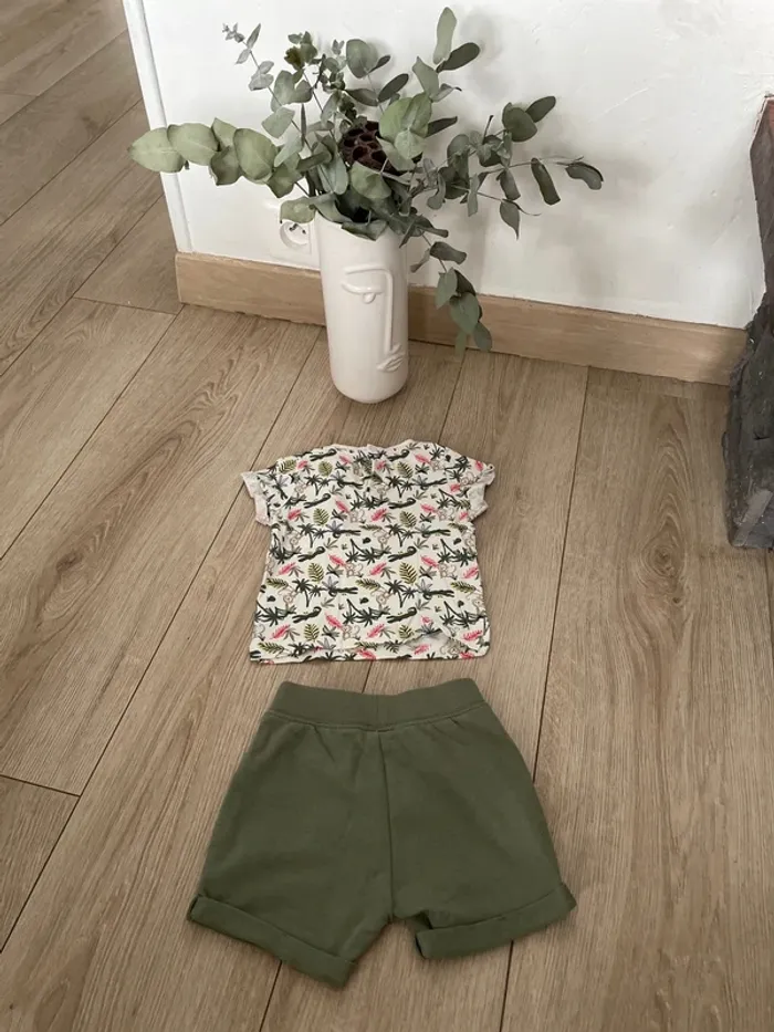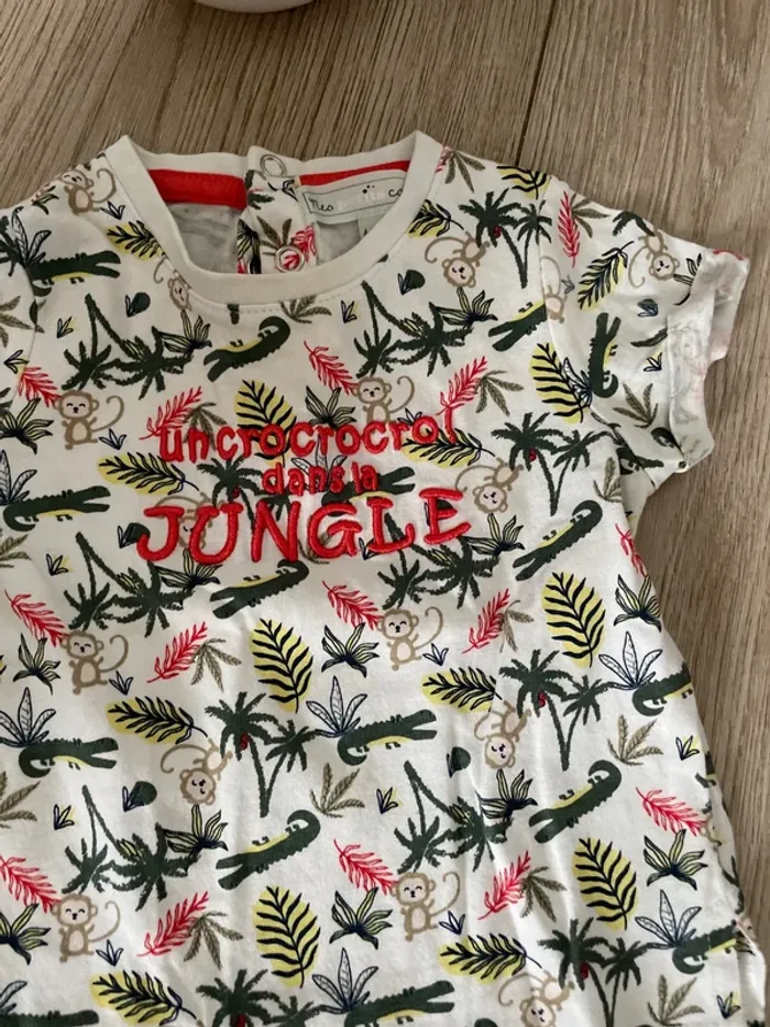 ensemble tee-shirts jungle + shorts kaki taille 6 mois haut de marque mes petits cailloux et le short la boîte à malices ensemble peu porté #6mois #bebegarcon #ensemblebebe #lotdevetements #vetementsétébébé #mesperitscailloux6mois #ensemblebebe #ensemblebebejungle #vetementsbebegarcon #bebegarcon6mois
