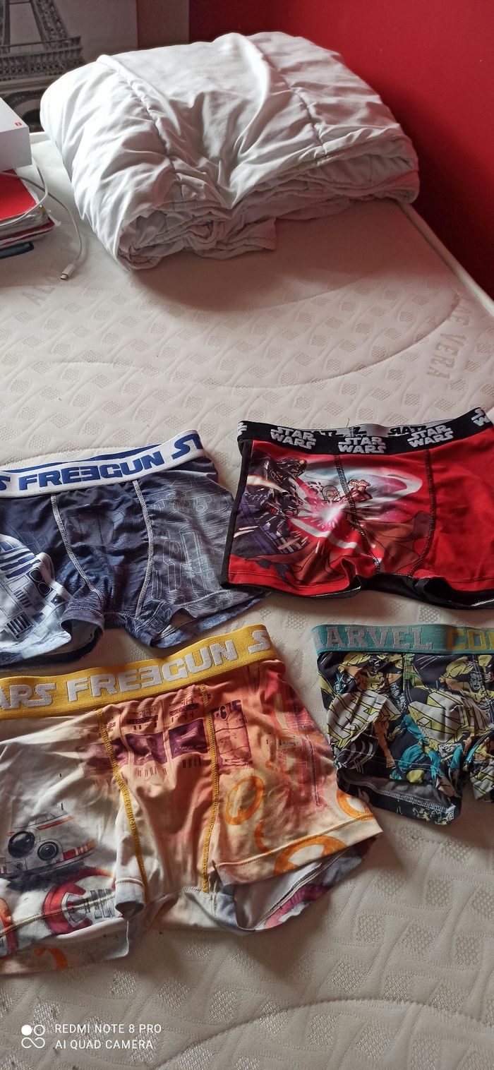 Vends un lot de boxers 8 ans freegun... Star Wars et marvel