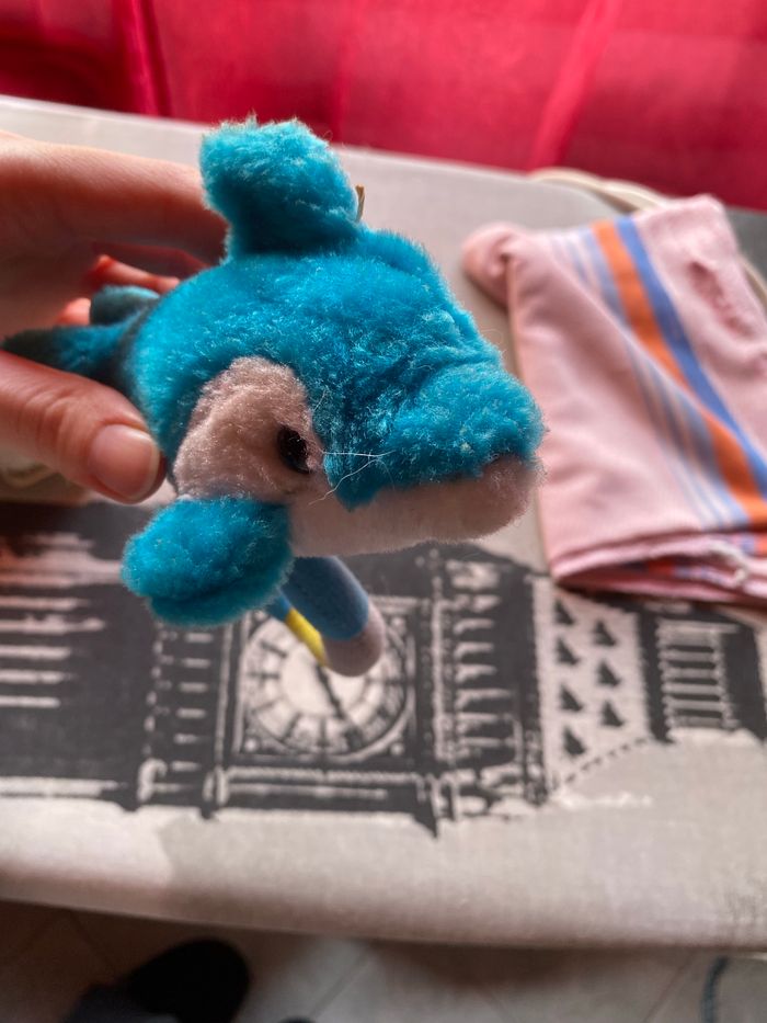 Peluche dauphin. Le dauphin peut sortir de sa bouée. Comme neuve