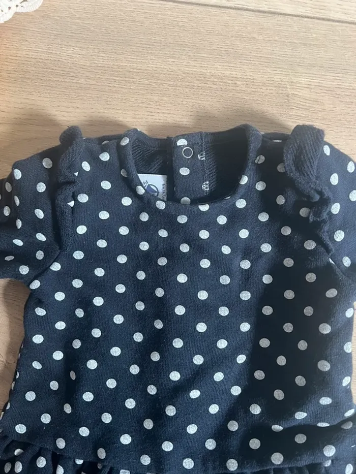📍 Jolie robe manche longue avec volant sur épaules bleu marine à pois blanc ®️ Petit Bateau 📏 6mois 🌺 Neuve jamais porté juste lavé #6moisfillepauline