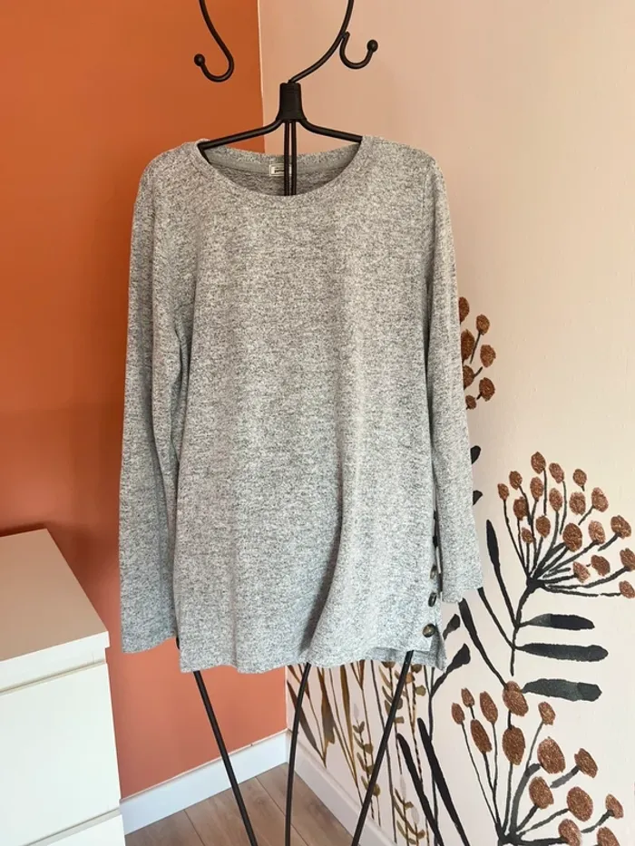 Pull gris avec ouverte fendue boutons sur le côté Pimkie, taille M #femmepaulinegdr
