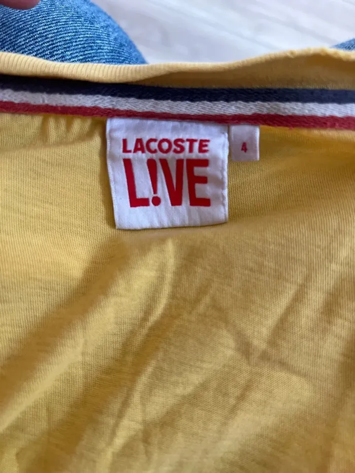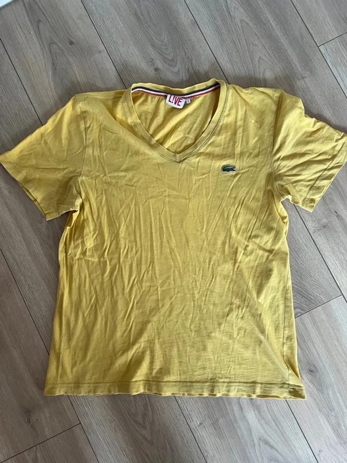 T-shirt jaune Lacoste Porté Bon état, taille 4 petit trou en bas du t-shirt