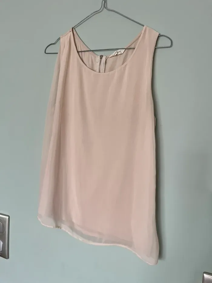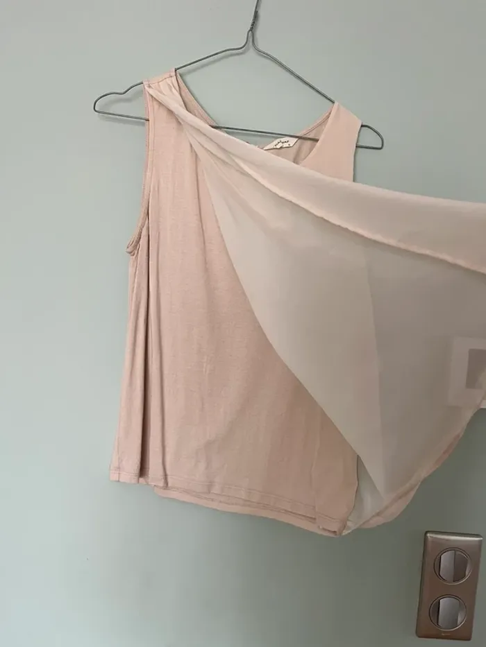 Débardeur Nafnaf taille M Couleur beige , peut avoir de rose poudré selon la luminosité Très bon état, juste une mini trace à l’arrière peu visible en photo ✨Réduction jusqu’à 25% sur les lots #lono46femme