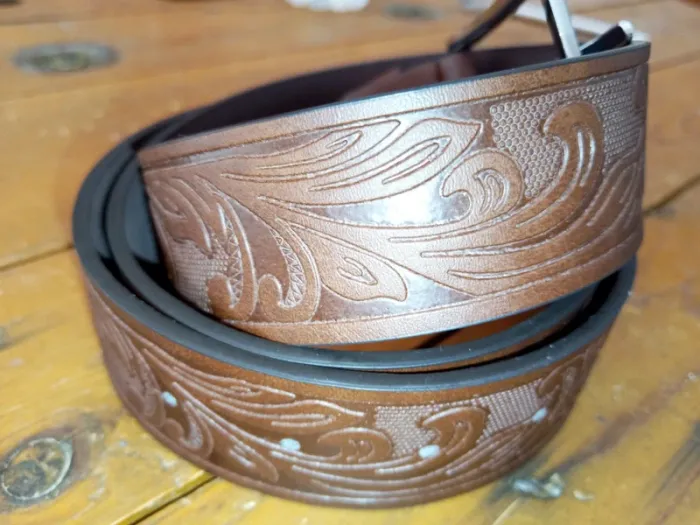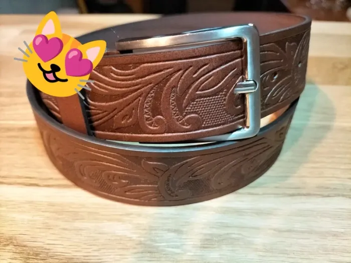 Ceinture marron motif feuilles boucle carré 120 cm #ceintureviolettechti L'argent de chaque vente es reversé aux associations pour les animaux ou je suis bénévole.