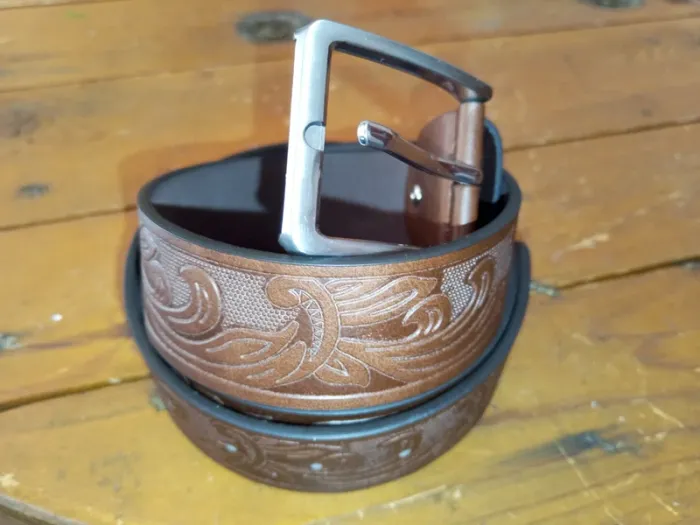Ceinture marron motif feuilles boucle carré 120 cm - photo numéro 1