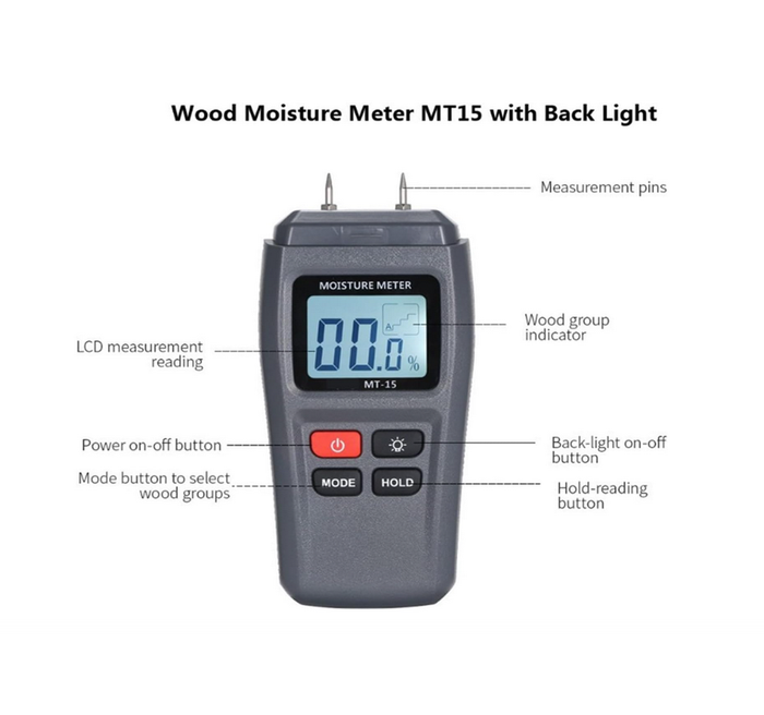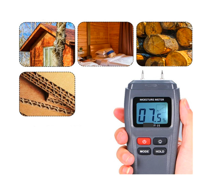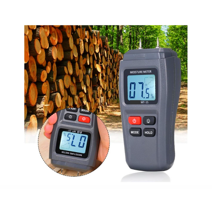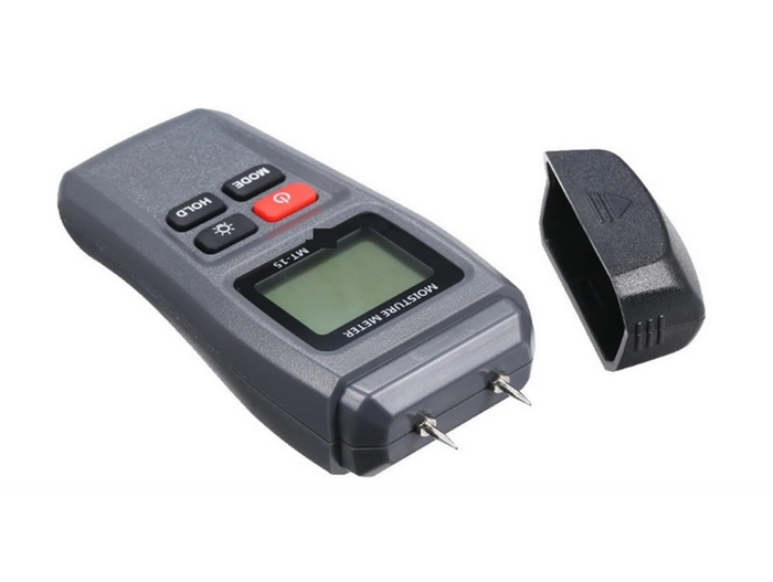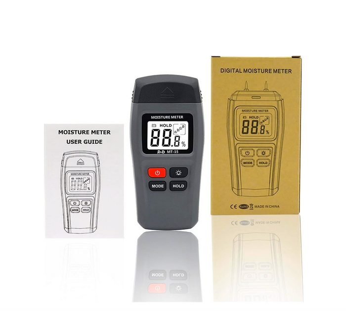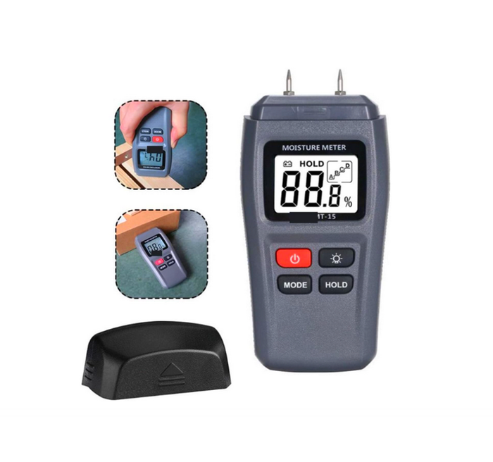 Testeur d'humidité avec écran numérique LCD pour le bois neuf dans sa boîte ★ Grand écran LCD, facile à lire ★ Utilisé pour tester avec précision la teneur en humidité du bois et d'autres matériaux de construction ★ L'instrument a une large gamme de mesure de l'humidité, une haute précision, un affichage clair, une mesure rapide, une performance stable, des résultats fiables, une petite taille et un poids léger. Il peut être transporté sur place pour une détection rapide, et il est simple et pratique à utiliser Caractéristiques : - Grand écran LCD - L'écran a sa propre fonction de rétroéclairage. - Plage de mesure : 0 ~ 99,9 %. - Précision de mesure : ± 0,5 %. -Résolution de l'écran: 0,1% - Il peut être utilisé pour mesurer la teneur en humidité de divers matériaux tels que le bois, le carton.