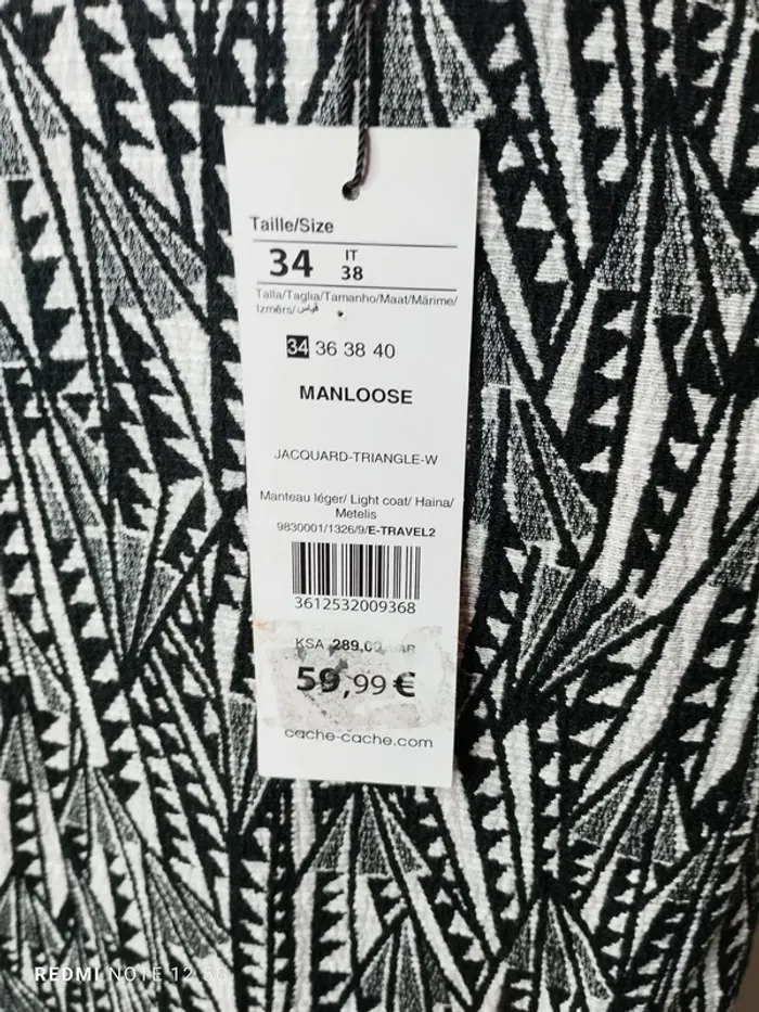 Manteau léger taille 34/XS Neuf jamais porté, valeur 59€99 #xsjennifervinouze