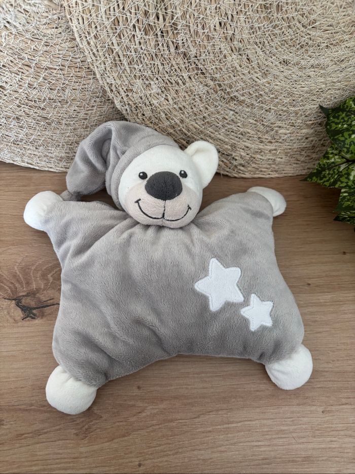 Doudou ours bonnet gris étoile blanche grelot bout’chou - photo numéro 1