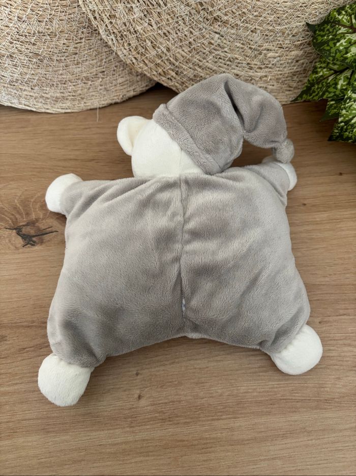 Doudou ours bonnet gris étoile blanche grelot bout’chou