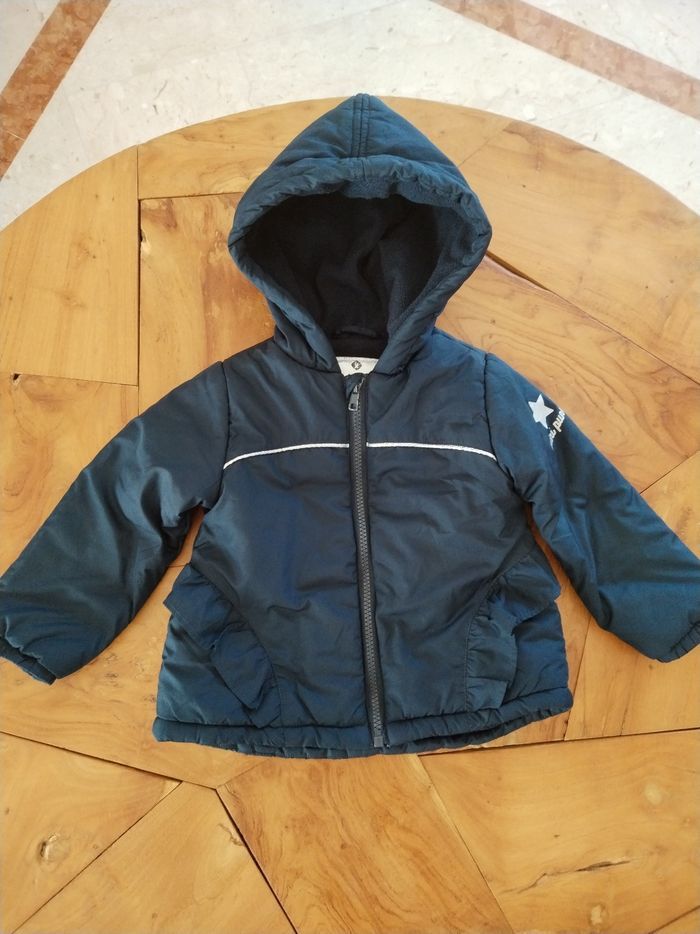 Doudoune bleu marine chaude avec capuche 2 ans