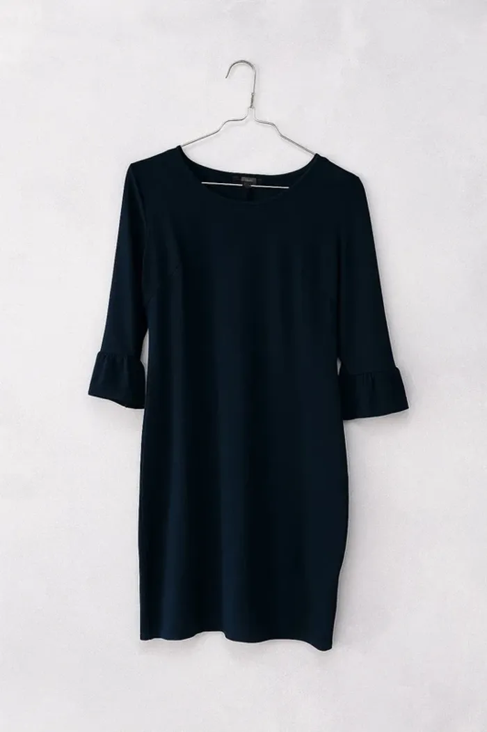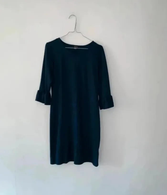 Taille : 34 (XS) Couleur : Bleu marine Manches 3/4 avec petit volant au bout pour une touche élégante. Coupe droite, confortable et facile à porter au quotidien comme pour une sortie. Matière douce et agréable sur la peau. 📌 En très bon état, portée une seule fois. ➡️ Idéale avec des baskets pour un look décontracté ou avec des talons pour une tenue plus chic.