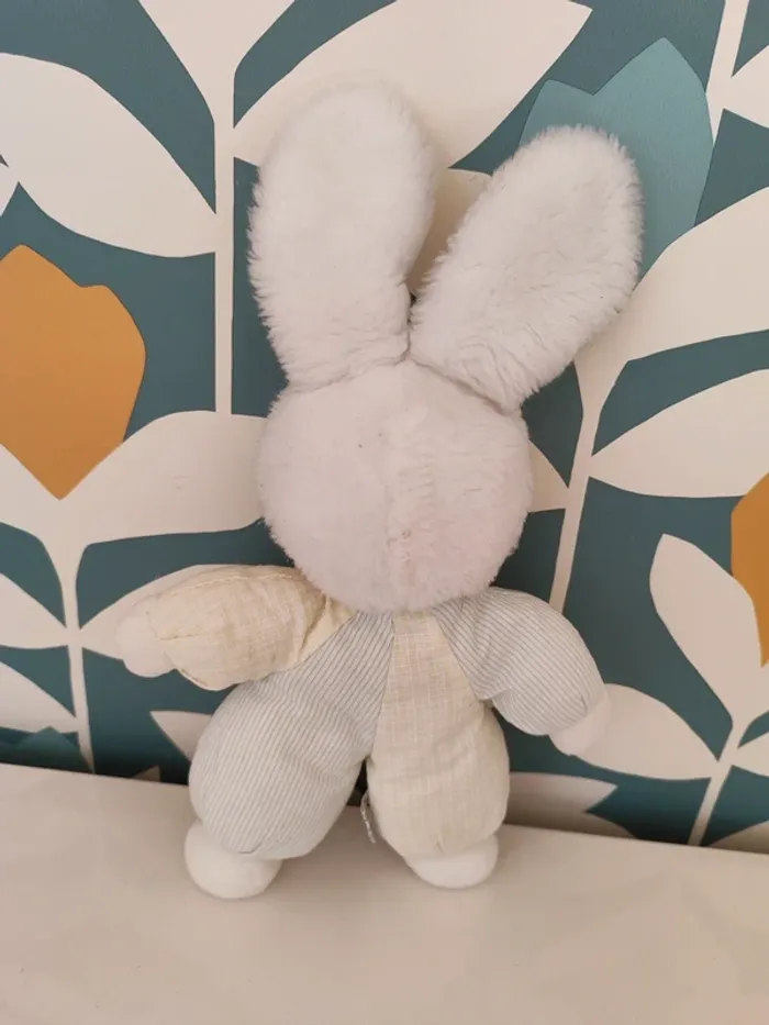Doudou peluche lapin jaune vert blanc jules et julie En très bon état 30 cm Envoi rapide et soigné 🌸