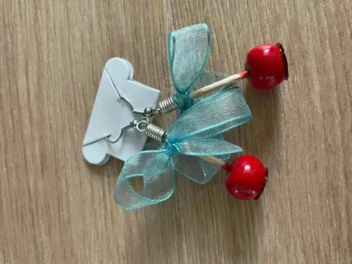 Boucles d’oreille pomme d’amour et ruban