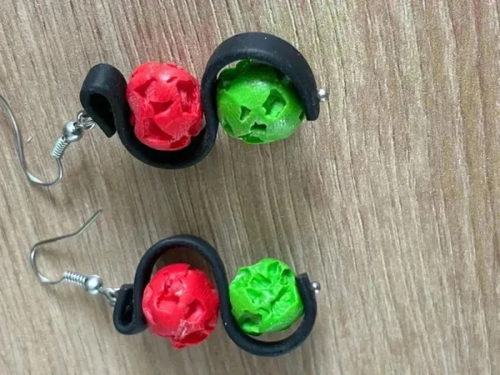 Boucle d’oreille verte et rouge