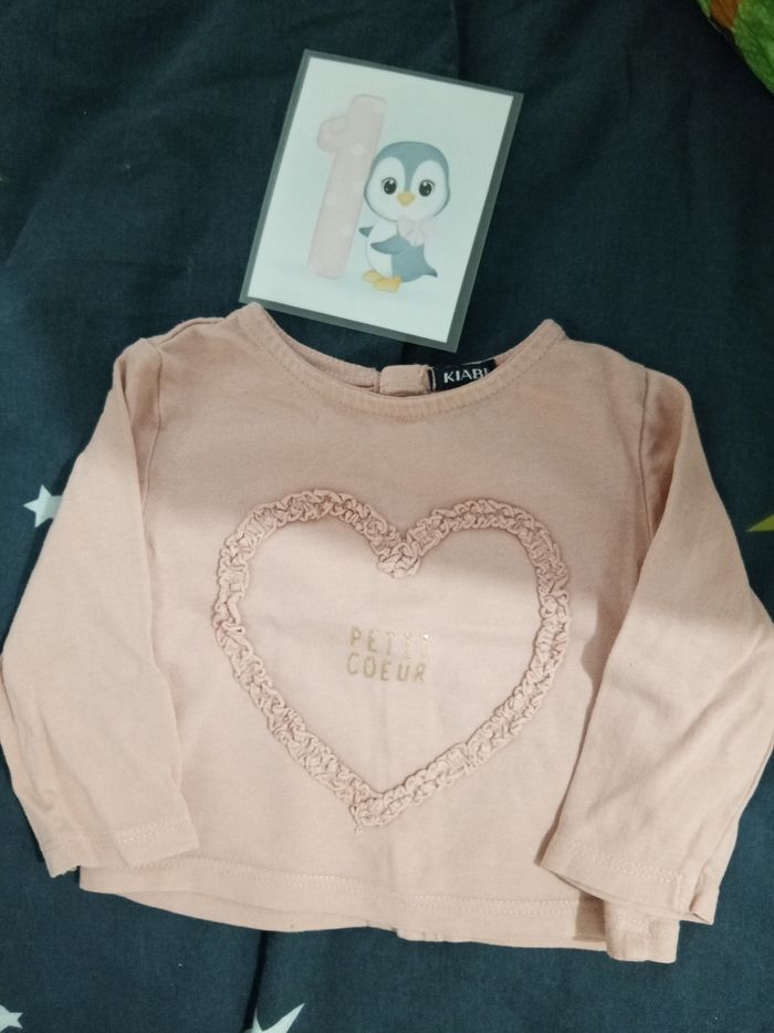 T-shirt ML rose "petit coeur" _ 1 mois - photo numéro 3