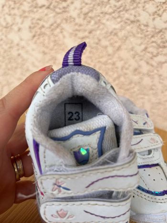 Paire de basket Pointure 23 mais taille petit , donc plutôt 22 Article eu d’occasion, non porté par ma fille du coup, et donc très bon état (pas neuf)