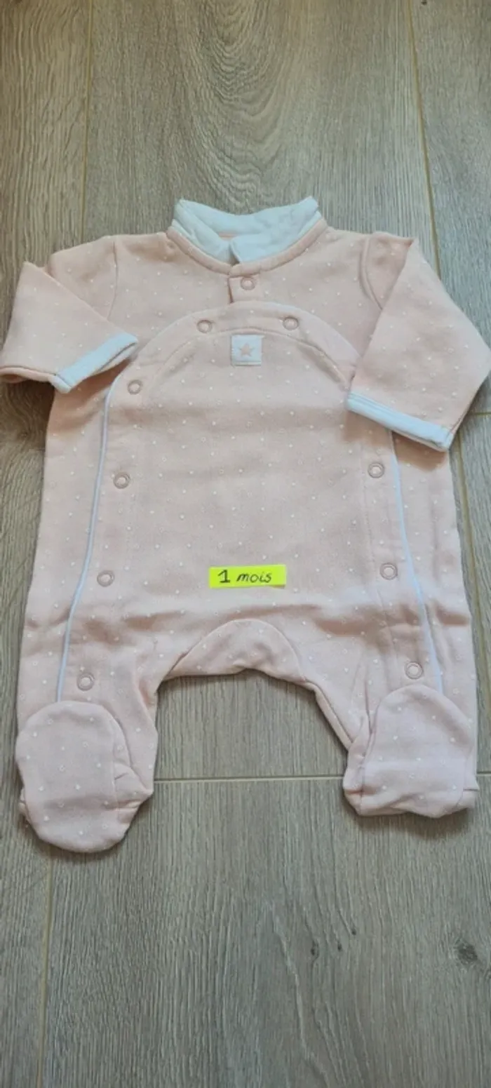 Grenouillère manches longues fermeture à l'avant par pressions Idéal en tenu de jour et/ou nuit 1 mois