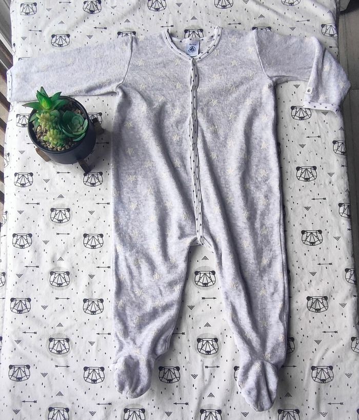 Pyjama gris en velours avec étoiles blanche en bon état de la marque Petit Bateau pour fille taille 18 mois