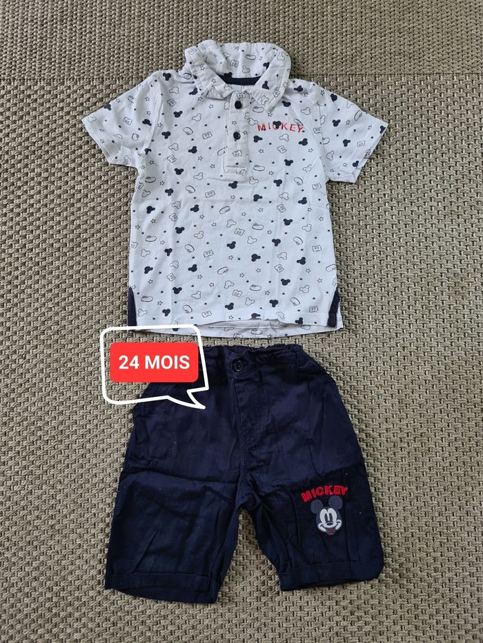 Ensemble polo manches courtes et short assorti motif "mickey". Idéal pour l'été. En bon état. Taille 24 mois - marque disney
