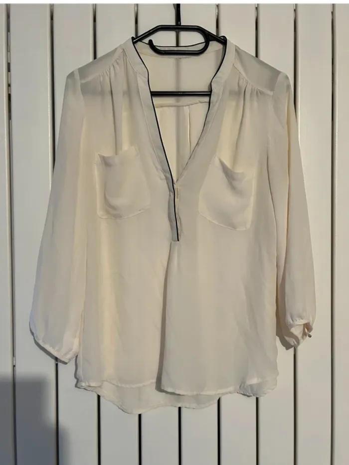 Blouse à manches 3/4 H&M taille S état neuf En mousseline donc transparente, très classe, de la gamme moderne & classique #lalyrd36