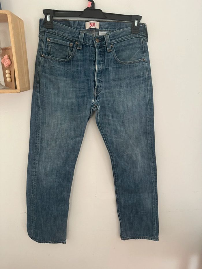 Jeans Levis, coupe droite. Taille américaine, W31, L 32 ce qui correspond à un 40 42 français. Tout dépend de si vous le souhaitez le porter large en 40 auprès du corps en 42. Déchiré à deux endroits voir photo. #levis #jeanslevis #leviscoupedroite501 #mille1209_homme40