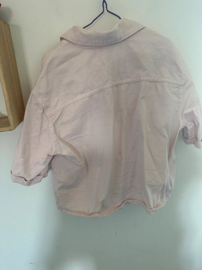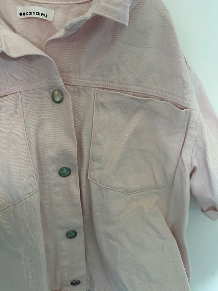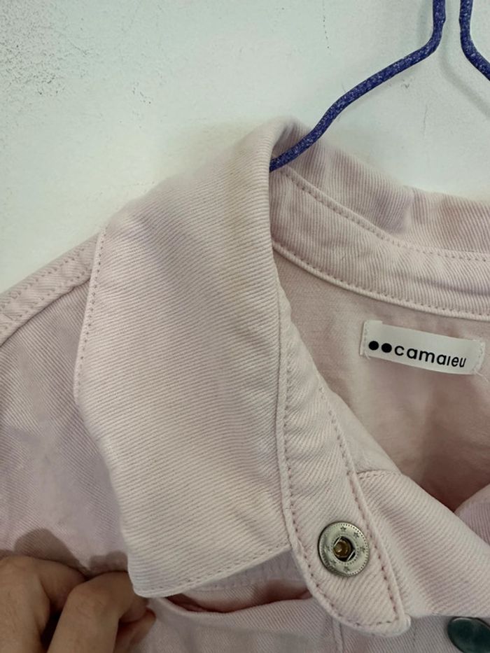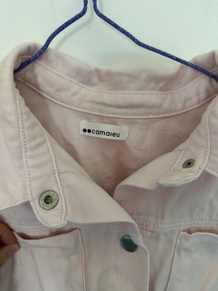 Veste en jean courte, couleur rose, pale, marque camaïeu taille M tâches à l’intérieur du col #vesteenjean #camaieu #femme38 #mille1209_femme38