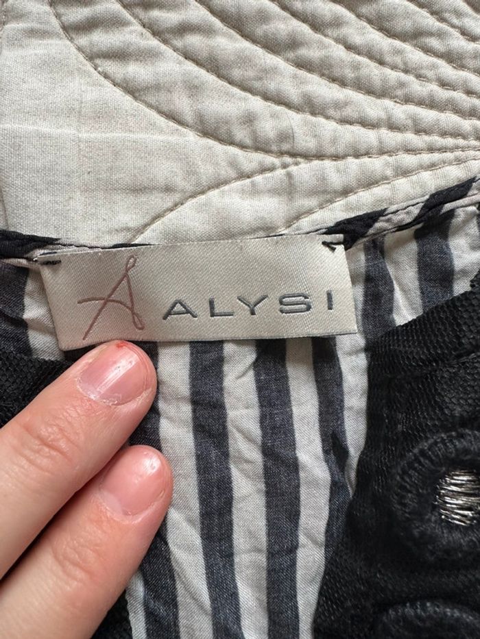 Blouse rayée, taille S. Taille grand convient aussi à une taille M. Fermeture par nombre de deux tête de tigre noir,marque Alysi #femme36 #femme38 #mille1209_femme36