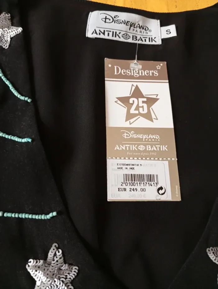 Tee shirt noir Disney, provenant du Parc Hors de prix et jamais porté, encore avec étiquette : 249€ Tee shirt noir avec paillettes et sequins et tête de Mickey #disneylandparis #antikbatik #antikbatik #disneyland #disney25ans #disneycollector25years #Mickey #mickey #Mickeymouse #mickeymouse