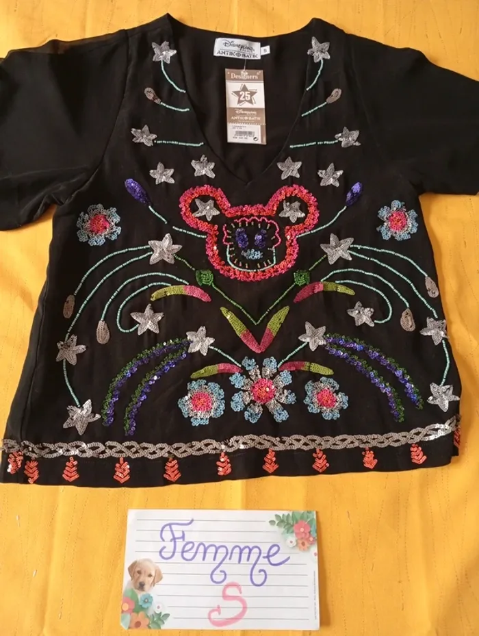Tee shirt Rare Antik Batik Disney Designers avec sequins Taille S