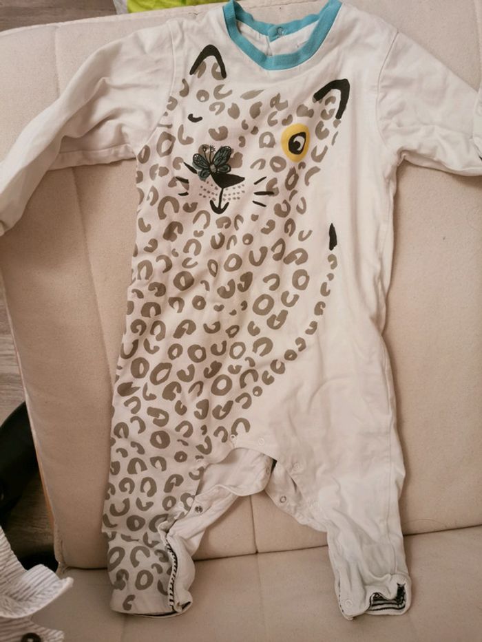 Combinaison qui peut s'utiliser aussi comme pyjama sans pied Legere petite tache sur une manche à l'arrière