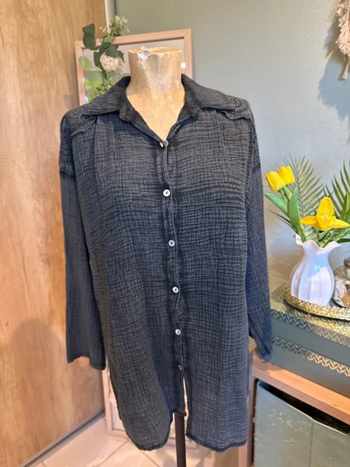Très jolie chemise longue avec dentelle épaule et étoile au dos - photo numéro 2
