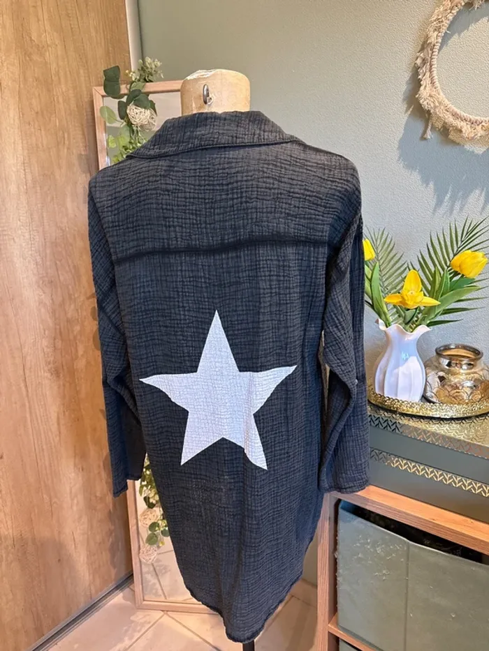 Très jolie chemise longue avec dentelle épaule et étoile au dos - photo numéro 1