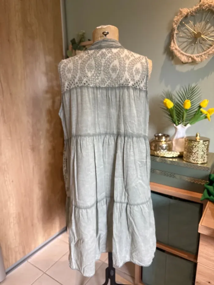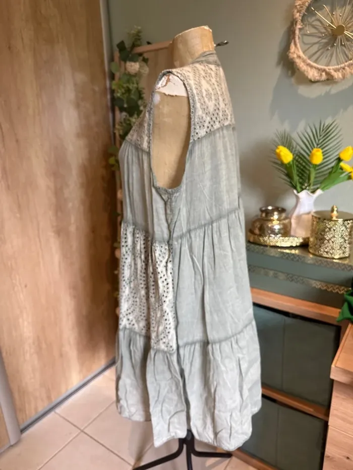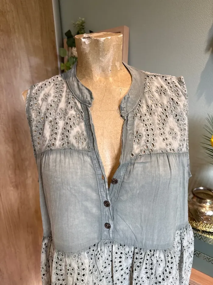 Jolie robe sans manches broderie et doublée en coton femme - photo numéro 4