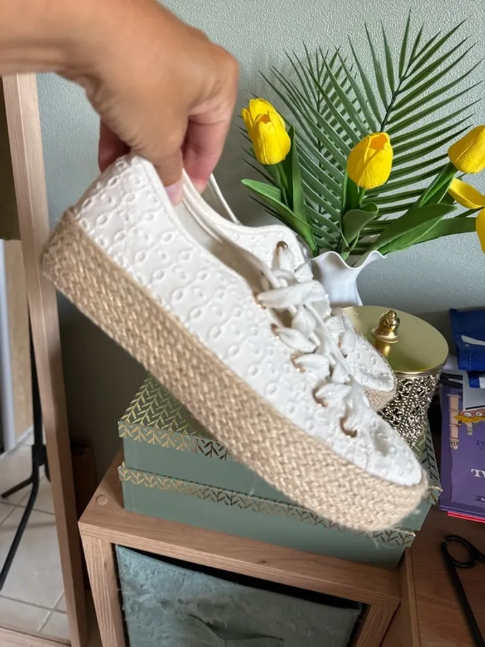 Superbes baskets broderie compensées espadrilles femme - photo numéro 1
