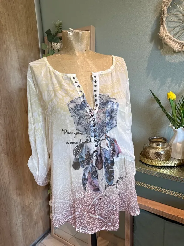 Très jolie blouse, coloré transparente, motif attrape-rêves femme - photo numéro 1