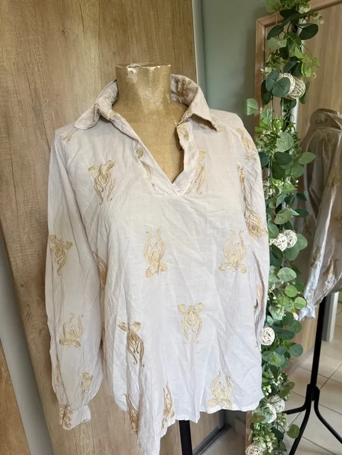 Jolie blouse fluide manches longues avec détails dorés femme - photo numéro 1