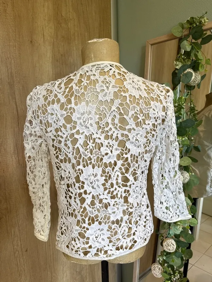Très jolie blazer bi matière crochet et tissu - photo numéro 1