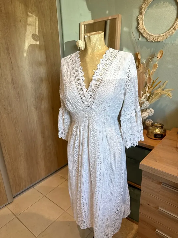 Magnifique robe dentelle doublée manches 3/4 femme - photo numéro 1