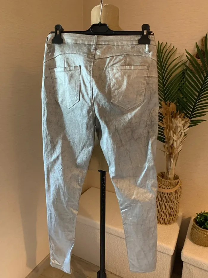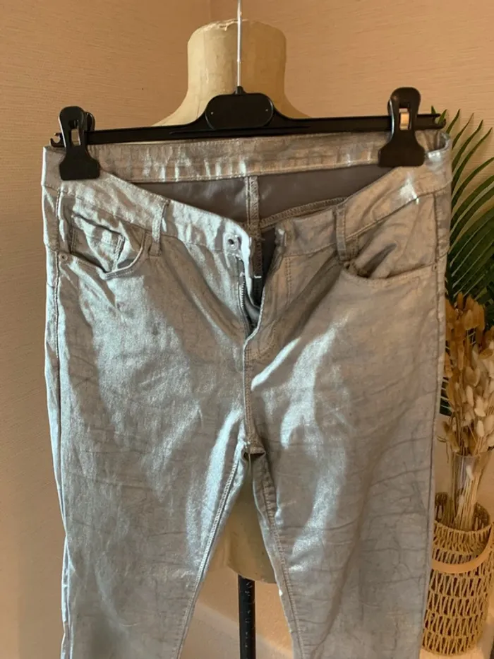 Très beau pantalon toile argentée femme 38/40 - photo numéro 4