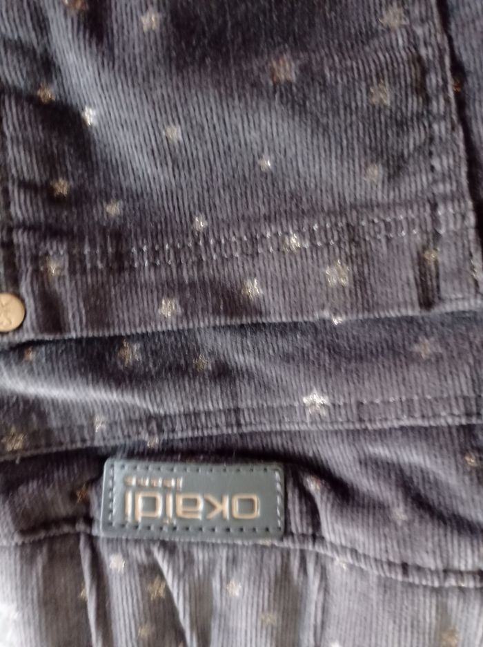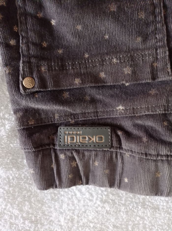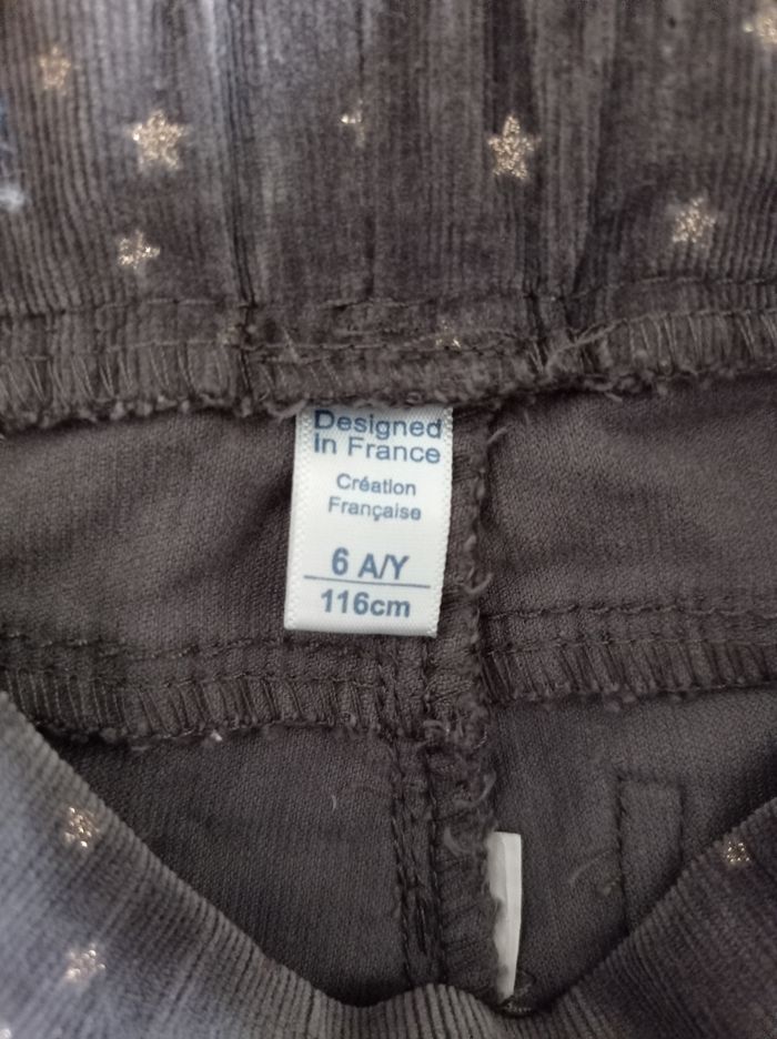 Marque Okaïdi pantalon velours gris avec petite étoile dorée pour fille 6 ans