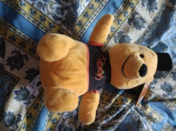 Peluche chien avec les pattes de couleurs Le crochet bleu se tire pour faire de la musique En bon état et fonctionne parfaitement #rayondesoleil52jeux