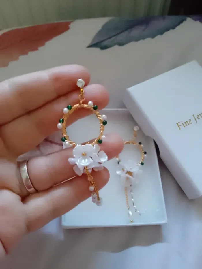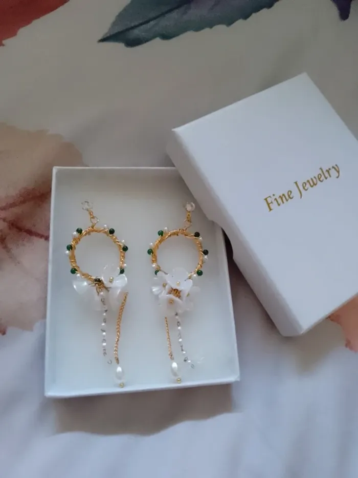 Boucles d'oreilles bohèmes perles et fleurs - photo numéro 1