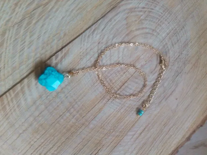 Collier trèfle à quatre feuilles pierre howlite  turquoise - photo numéro 4