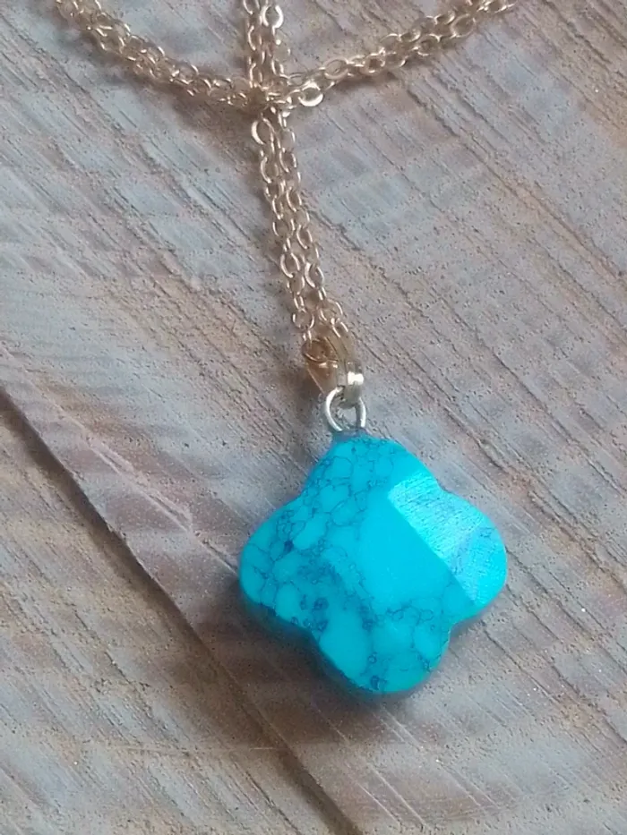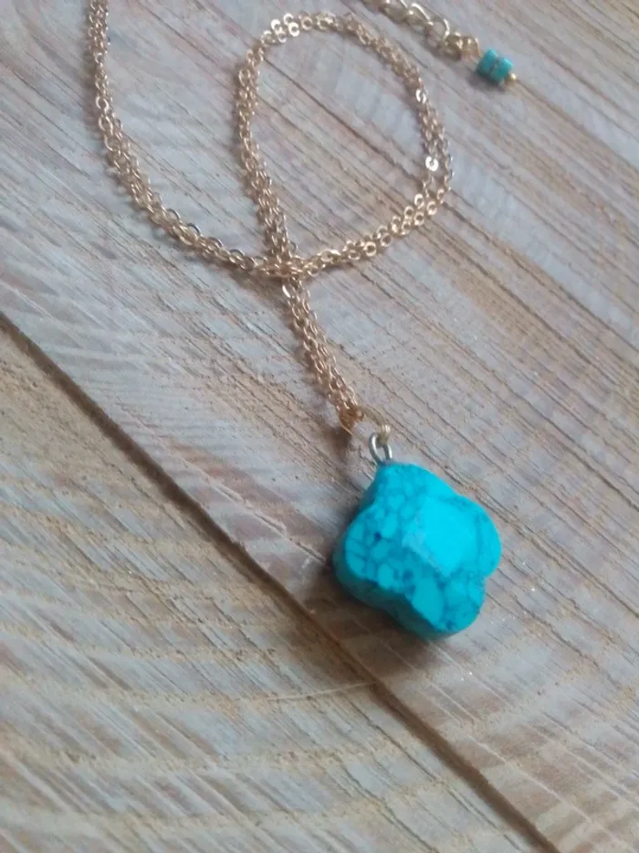 Collier trèfle à quatre feuilles pierre howlite  turquoise - photo numéro 1