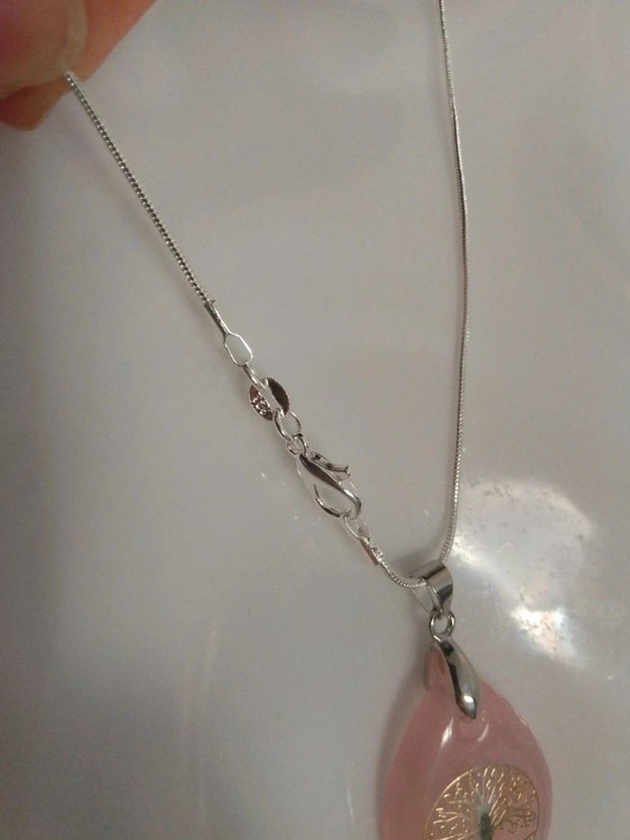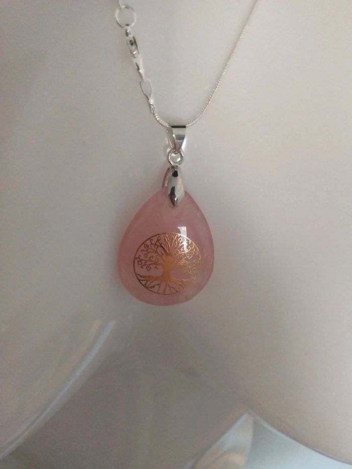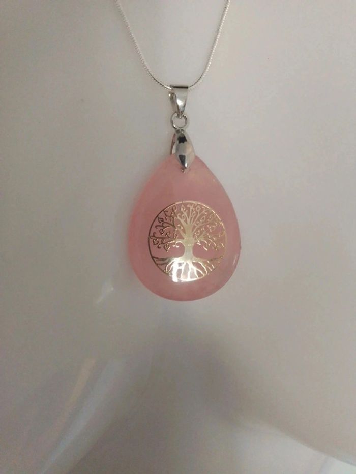 Collier quartz rose et arbre de vie doré Plaqué argenté 925 , chaîne serpent de 44cm Jamais porté Prix ferme Litho