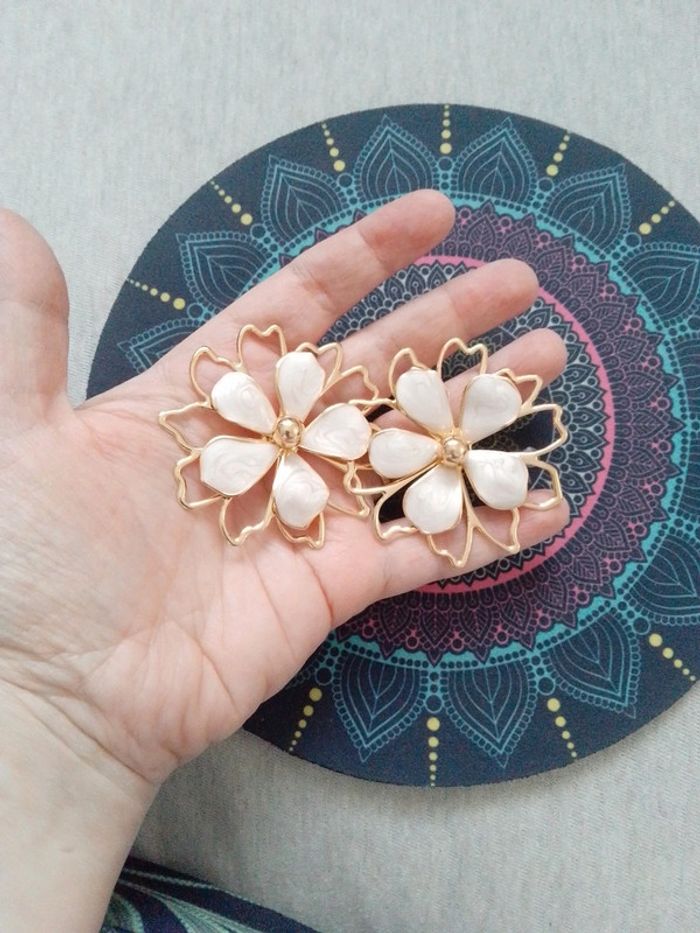 Boucles d'oreilles bohèmes fleurs, doré et blanc - photo numéro 1