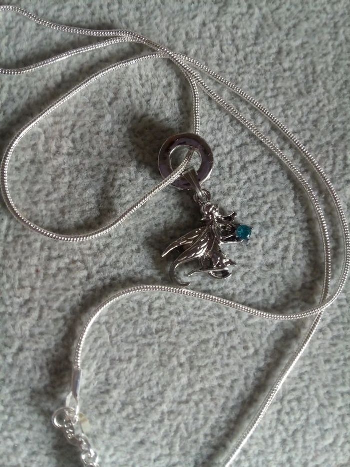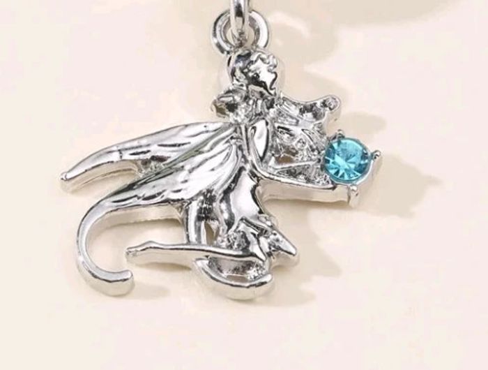 Chaîne plaqué argent Pendentif fée/elfe et zircon bleu, 1vie4 inoxydable N.e.u.f #magie ésotérisme lithothérapie Ariol