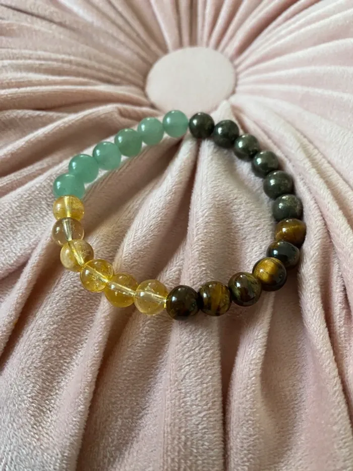 Super état Fabriqué avec soin à partir de pierres naturelles d'œil de tigre, de citrine et d'aventurine, ce bracelet est un symbole puissant de prospérité et de protection. Propulsez votre chance : L'œil de tigre, connu pour ses propriétés de protection et de courage, agit comme un bouclier énergétique, repoussant les énergies négatives et attirant la confiance en soi. Éclat et abondance : La citrine, pierre de la prospérité et de l'abondance, émet une énergie solaire revitalisante qui attire la réussite financière et le succès personnel. Harmonie et chance : L'aventurine, pierre de la chance et de l'harmonie, équilibre les émotions et favorise un état d'esprit positif, vous aidant à saisir les opportunités et à réaliser vos aspirations. d’autres ici 🌈#miyala34000blingbling J’ai des colliers en pierres naturelles aussi